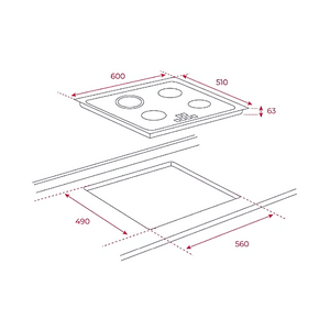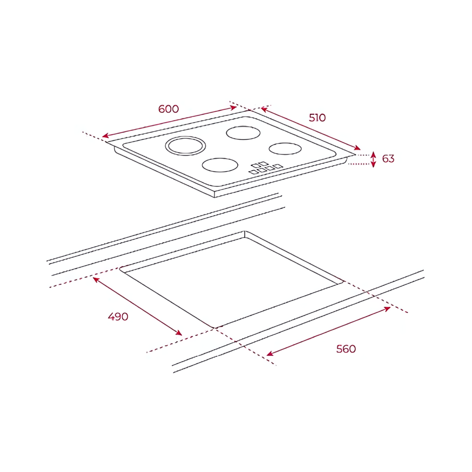 Cut-Out Dimensions (WxDxH): 560 x 490 x 51 mm
