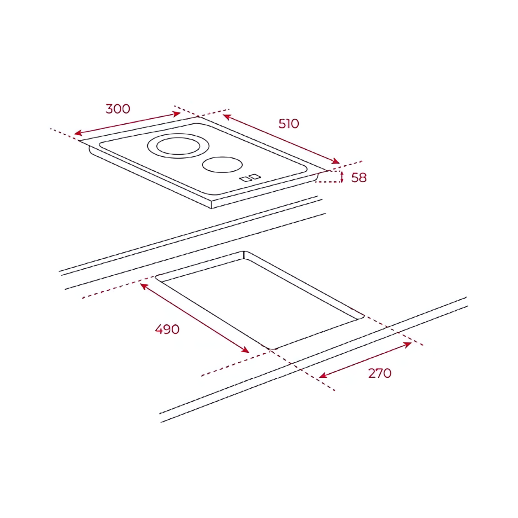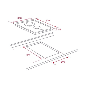 Cut-Out Dimensions (WxDxH): 270 x 490 x 58 mm