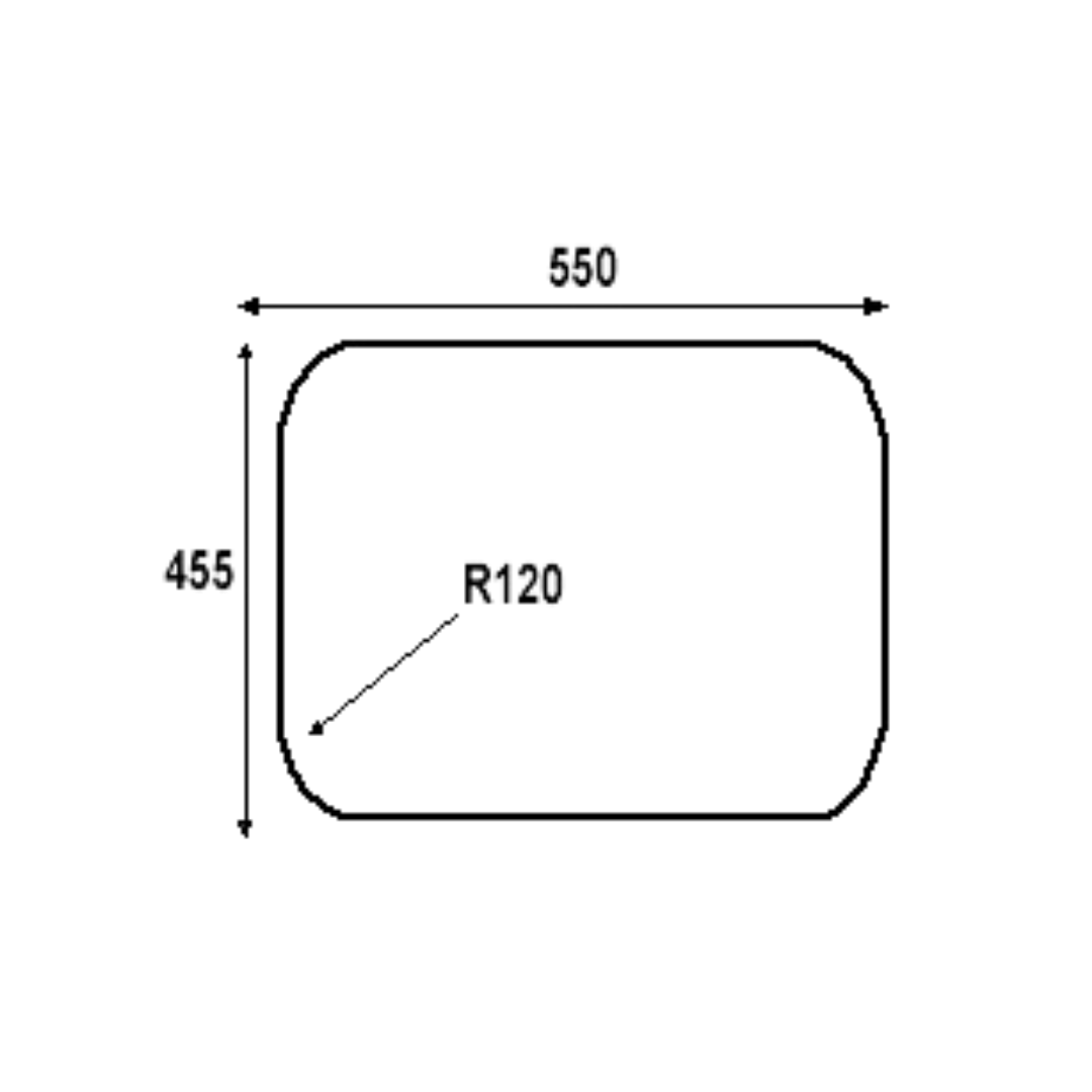 Cut-Out Dimensions (WxDxR): 550mm x 455mm x R120