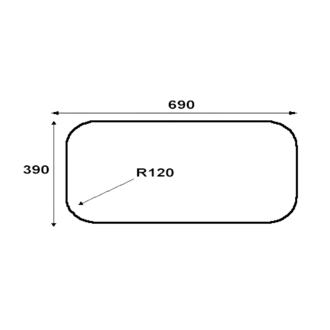 Cut-Out Dimensions (WxDxR): 690mm x 390mm x 120mm