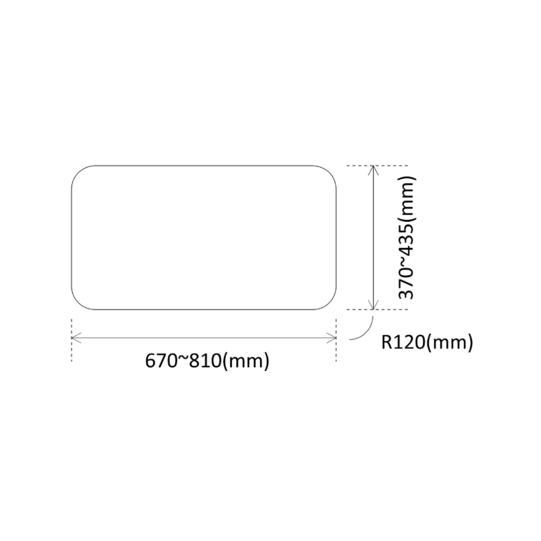 Cut-Out Dimensions (WxDxR): 670mm x 370mm x R120