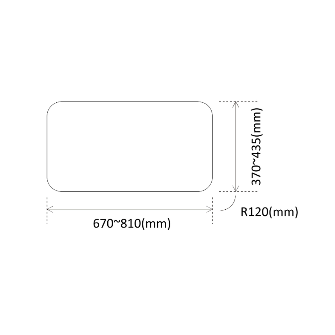 Cut-Out Dimensions (WxDxR): 670mm x 370mm x 120mm