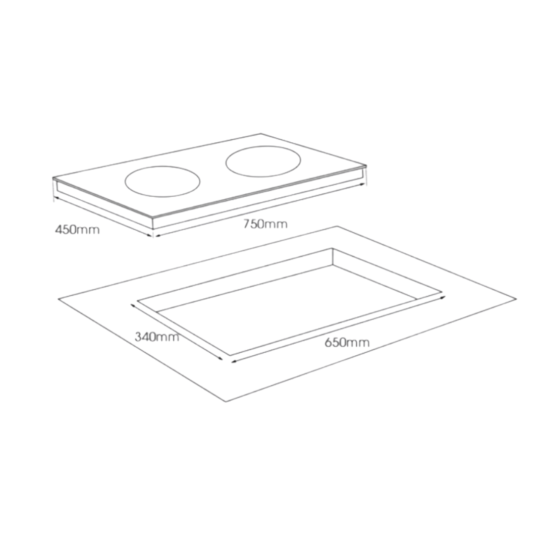 Cut-Out Dimensions (WxD): 650mm x 340mm