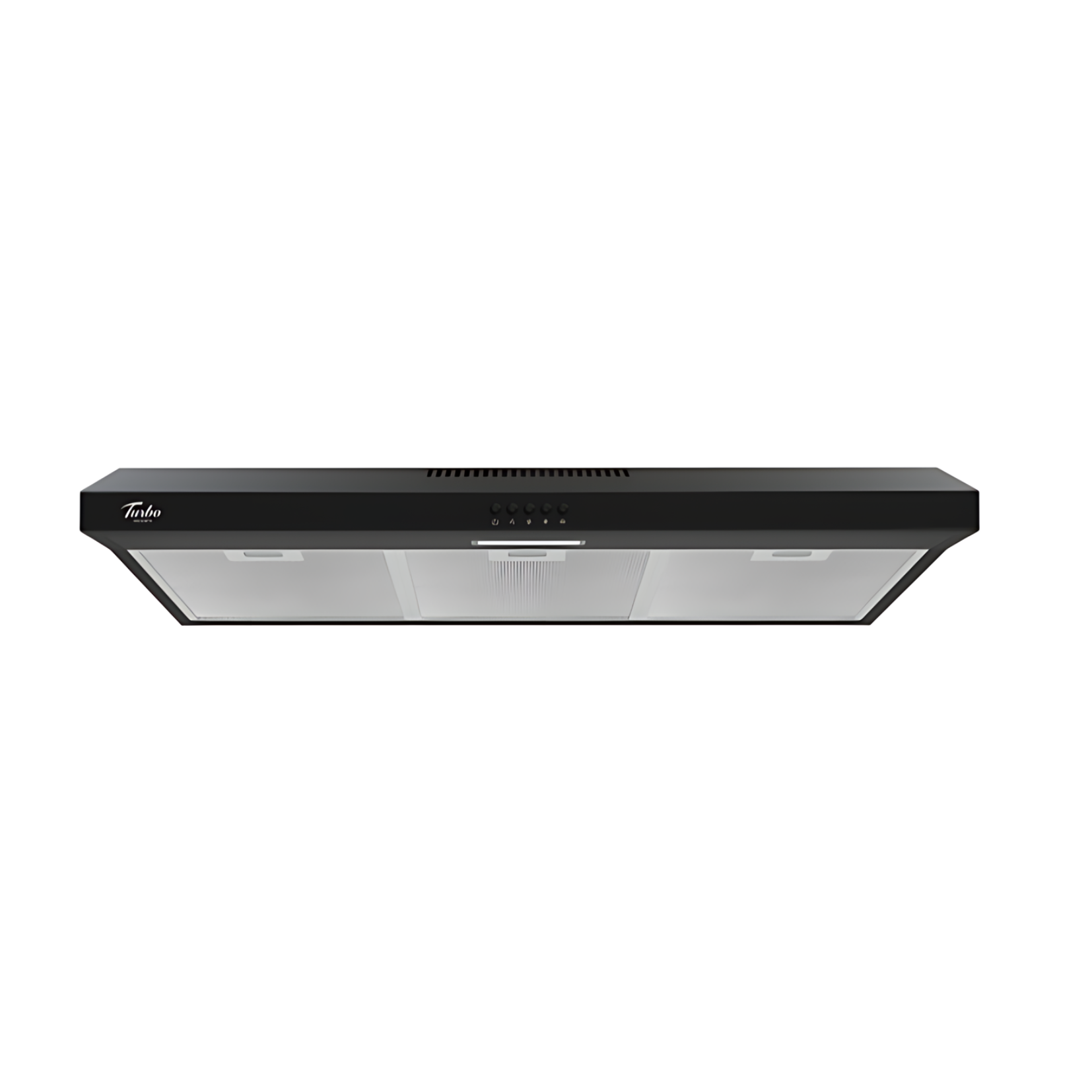 Turbo's 90cm Range Hood features a bright, energy-saving LED square light, a 3-layer aluminium filter, a 3-speed push button control, and offers strong suction power with coverage up to 730m³/hr for efficient and effective ventilation.
