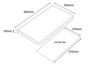 Cut-Out Dimensions (WxDxH): 670mm x 370mm x 50mm