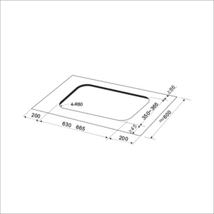 Cut-Out Dimensions (WxDxR): 630 - 665mm x 350 - 365mm x R80