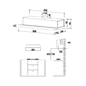 Dimensions (LxWxH): 900 x 280 x 40+150mm