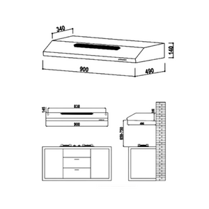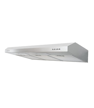 Elegant and space-saving, the Valenti VH3039MS features a 90 cm stainless steel slimline design with three-speed mechanical controls. Powered by three 100 W motors delivering up to 852 m³/h airflow and under 61 dB noise, it includes aluminum grease filters, charcoal filters and built‑in lighting.