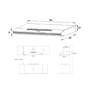 Dimensions (LxWxH): 900 x 500 x 100mm