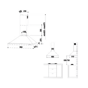 Dimensions (LxWxH): 900 x 515 x 625 (+350=975)mm