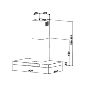 Dimensions (LxWxH): 900 x 500 x 530 (+465=995)mm