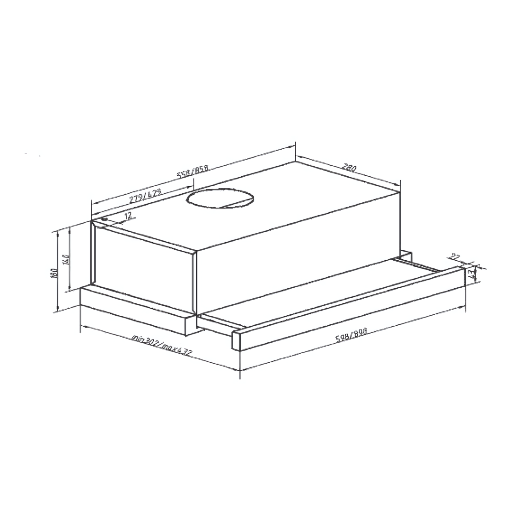 The 90cm Slimline Hood features a telescopic design and operates in ducted-out mode for efficient ventilation. It includes a high-quality aluminum grease filter to effectively capture grease and particles. Constructed from high-grade stainless steel 430, this hood ensures durability and adds a sleek, modern look to your kitchen.